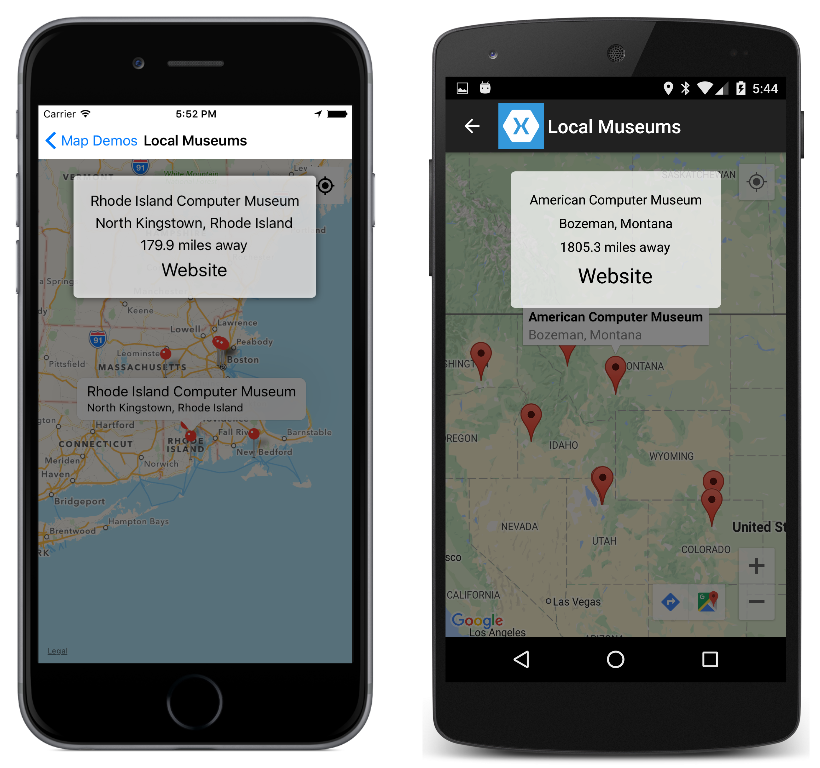 Le projet MapDemos contient le fichier ScienceMuseums.xml, qui répertorie les musées scientifiques dans le États-Unis et Locations les Site classes pour désérialiser ces données.