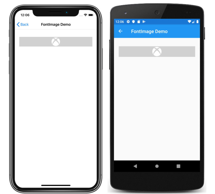 Dans cet exemple, la version abrégée du nom de classe FontImageExtension est utilisée pour afficher une icône XBox, à partir de la famille de polices Ionicons, dans un Image. L’expression utilise également l’extension de OnPlatform balisage pour spécifier différentes FontFamily valeurs de propriété sur iOS et Android. En outre, la Glyph= partie de l’expression est supprimée et les propriétés d’extension de balisage définies sont séparées par des virgules. Notez que bien que le caractère Unicode de l’icône soit \uf30c, il doit être placé en échappement en XAML et devient ainsi .