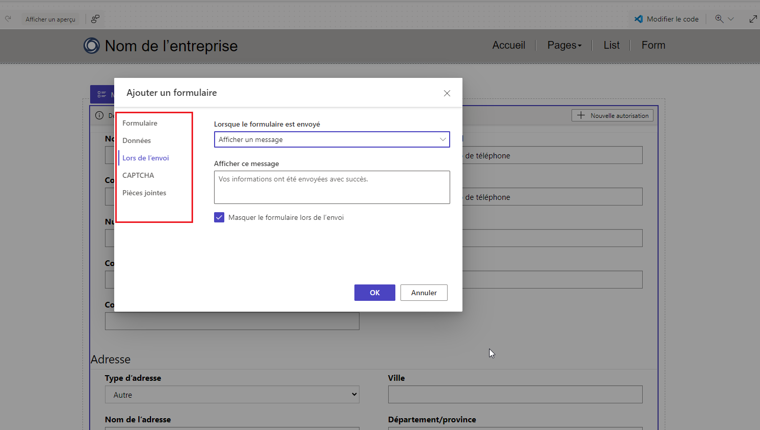 Configurer le formulaire