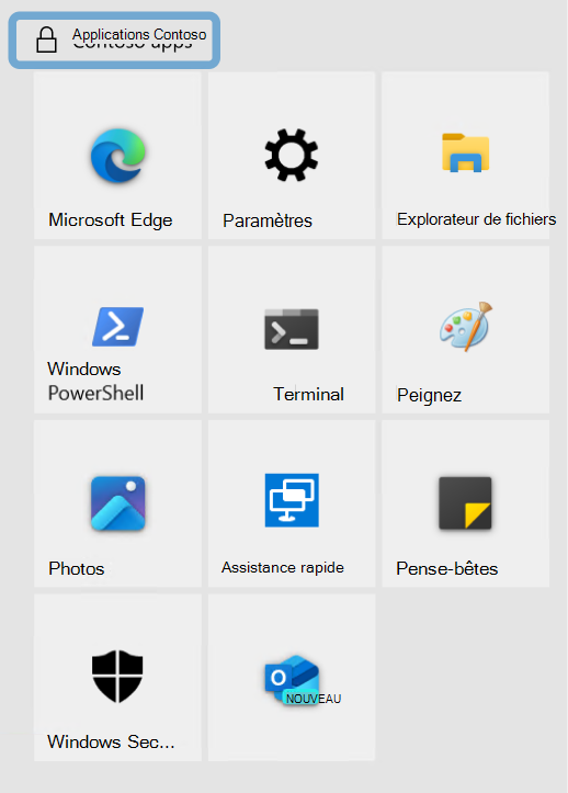 L’implémentation d’une disposition de démarrage personnalisée sur les appareils de votre organization permet aux administrateurs de contrôler directement la configuration du menu Démarrer. Avec cette fonctionnalité, vous pouvez spécifier un ensemble personnalisé d’applications épinglées, organisées selon les préférences. Utilisez cette fonctionnalité pour épingler stratégiquement les applications souhaitées, éliminer les applications épinglées par défaut et organiser l’affichage de l’application en fonction des exigences opérationnelles.