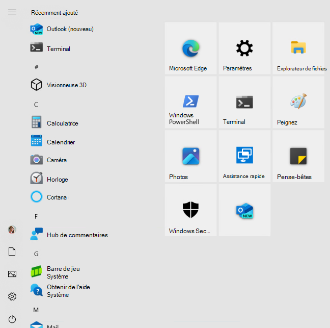 • Pour en savoir plus sur les paramètres de stratégie disponibles pour configurer le menu Démarrer à l’aide du fournisseur de services de configuration (CSP) et de stratégie de groupe (GPO), consultez Paramètres de stratégie du menu Démarrer.