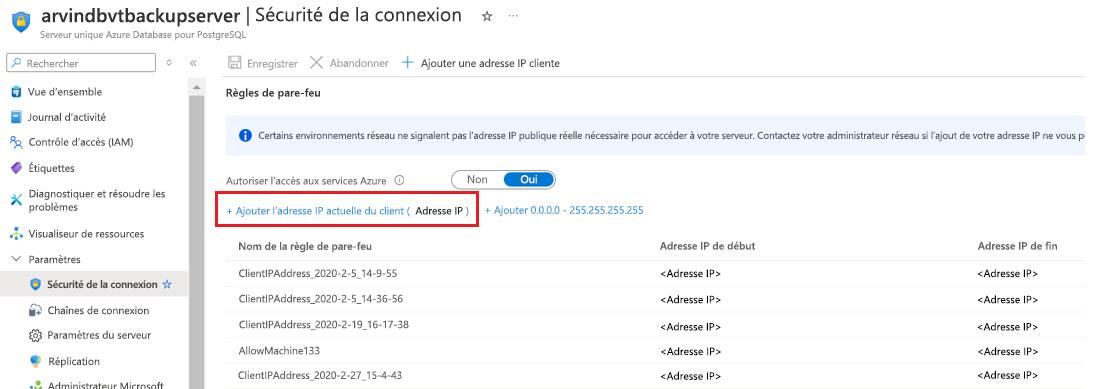 Veillez à ajouter l’adresse d’ID client actuelle aux règles de pare-feu pour que la connexion passe.