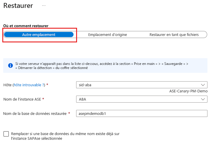 Pour restaurer la base de données SAP ASE à un autre emplacement, suivez ces étapes :