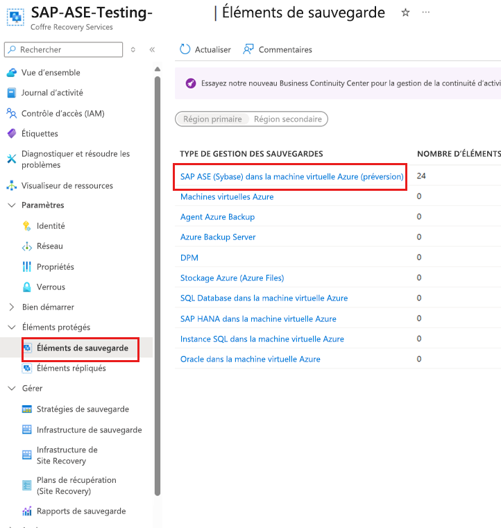 - Accédez au coffre Recovery Services, puis sélectionnez Éléments de sauvegarde.