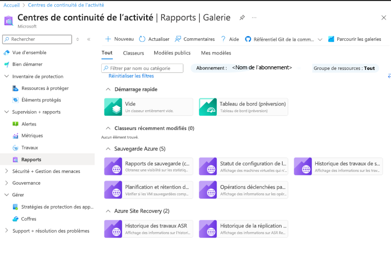 - Accédez à Résilience>Surveillance + Rapports>Rapports.