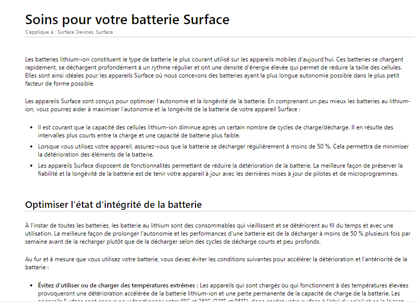 Entretemps je vous invite à consulter cet article qui donne des conseils sur les soins de la batterie Surface.
