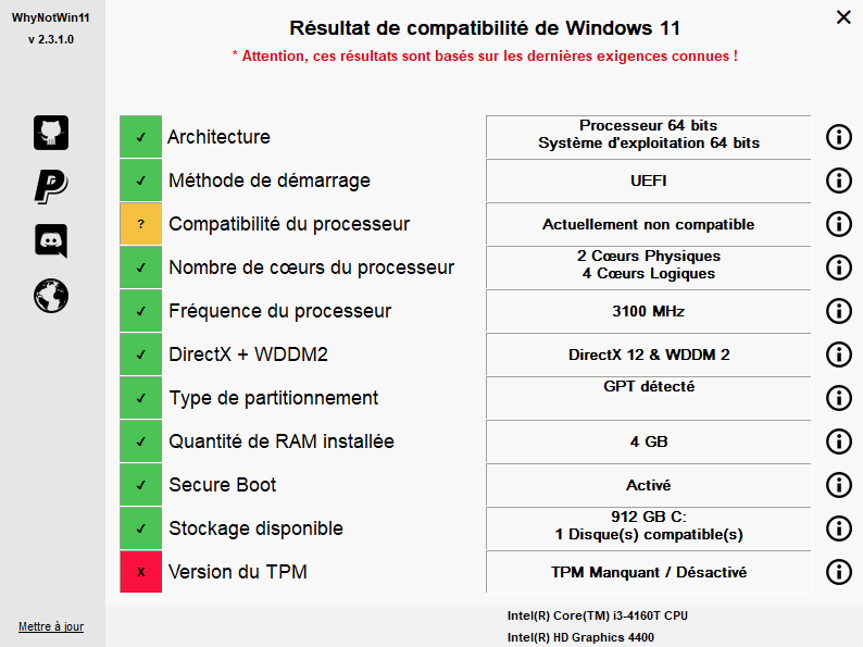 Un petit utilitaire WhyNotWin11.exe qui résume les spécificités matérielles du PC
