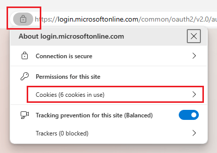 - Puis-je confirmer que vous avez essayé ce qui suit ? Visitez l’URL du centre d’administration Teams : https://admin.teams.microsoft.com -->En supposant que le site s’ouvre normalement, cliquez sur l’icône du cadenas à l’extrémité gauche de la barre d’adresse pour ouvrir la fenêtre contextuelle d’informations sur le site -->Cliquez sur Cookies pour afficher tous les cookies que le site a définis (il peut y en avoir un certain nombre).
