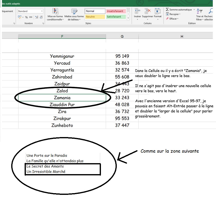 Je remarque un problème concernant le raccourci Alt-Entrée qui permet de créer une ligne dans une cellule. En effet, ce raccourci ne fonctionne pas.