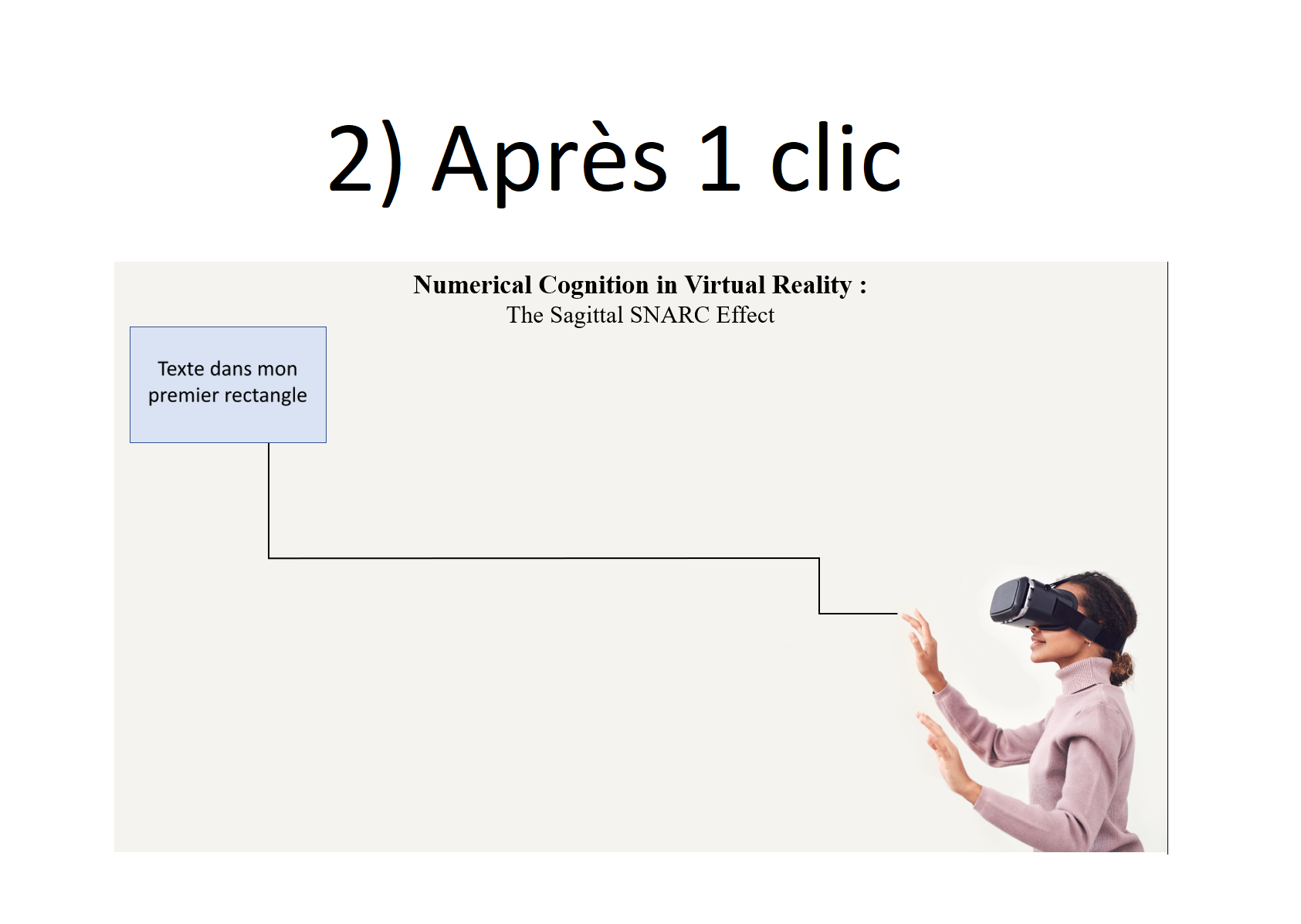 - La ligne aparaît au fur et à mesure, puis le rectangle + texte apparaissent en même temps