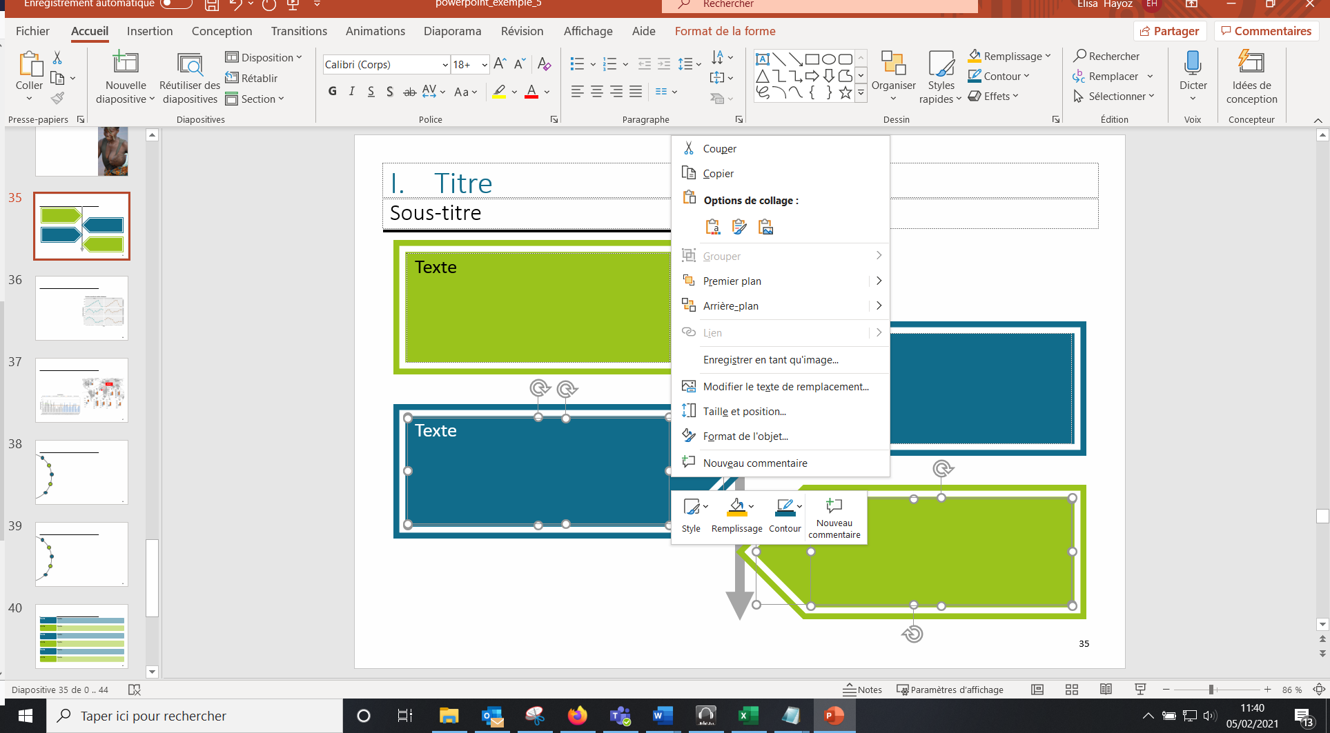 La majorité des objets peuvent être groupés, images, graphiques, formes, zones de texte etc ...