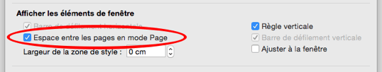 Dans l'onglet "Affichage" des préférences, est-ce que la case "Espace entre les pages en mode Page" est cochée ?