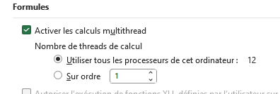 Je suis stagiaire dans le service informatique d'une entreprise et certains utilisateurs ont des cellules noires avec écrit à l'intérieur "Calcul 6 threads : 0%" qui apparaissent et disparaissent spontanément lors d'une modification ou un ajout de données dans des tableaux. Étant débutant avec Excel mais à l'aise avec l'outil informatique, j'ai fait des recherches pour essayer de trouver d'autres personnes dans ce cas mais sans succès.