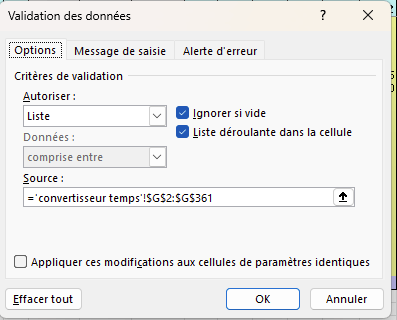 Actuellement en col AO j'utilise une liste de validation "refmin" définie ainsi :
