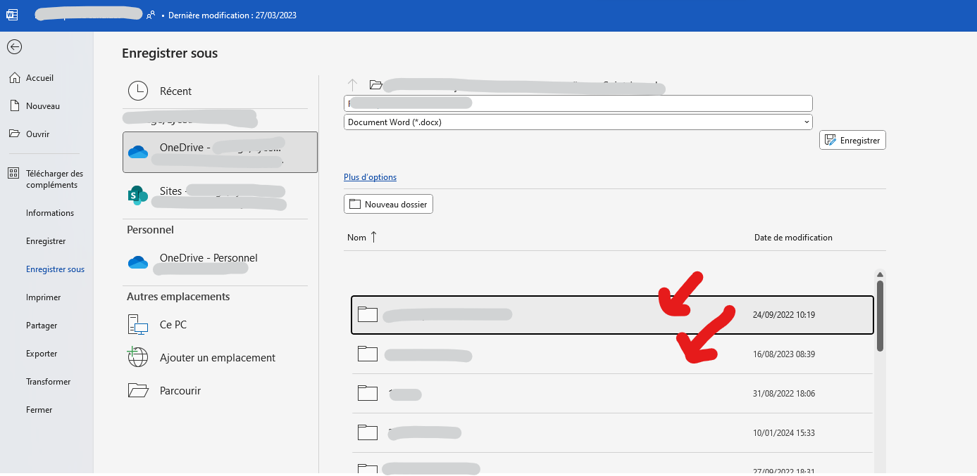 Je comprends que vous ne pouvez pas enregistrer un fichier dans un dossier préexistant lorsque vous utilisez un document Word et que cliquer pour ouvrir le dossier approprié échoue. Je comprends votre frustration en ce moment, et je ferai de mon mieux pour vous aider.