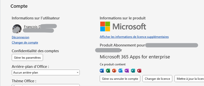 Ouvrez Word - Fichier - Compte et fournissez une capture d’écran sous « Informations sur le produit » (si vous avez une adresse e-mail ou quelque chose de privé, encodez-la et téléchargez-la).