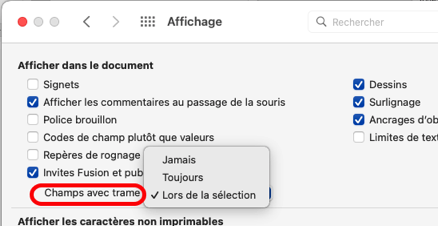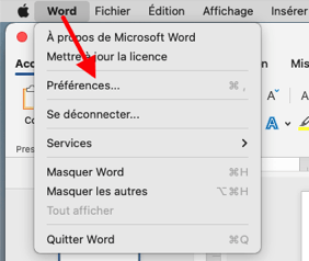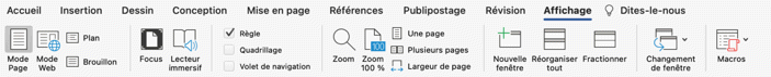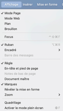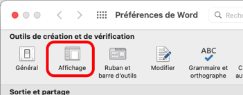 Euh... quand j'écris l'onglet "Affichage" des préférences de Word, je ne fais pas référence à l'onglet du ruban ou au menu qui se nomment "Affichage", mais aux préférences de Word (menu "Word" > "Préférences...") :