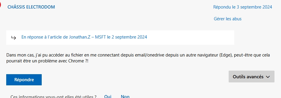 Sur la base de votre message d’erreur, le premier se produit généralement dans les comptes personnels, et le second, nous en avons rencontré davantage dans les comptes professionnels ces derniers temps, nous aimerions donc vous en dire plus à ce sujet. Enregistrez-vous le fichier dans SharePoint ?**De plus, dans votre première question, si vous souhaitez ouvrir le fichier dans la version Web, il est recommandé de télécharger également le fichier localement pour l’ouvrir et le visualiser.**J’attends avec impatience vos prochaines mises à jour, et si ma réponse initiale a été d’une certaine aide, j’espère que vous cliquerez sur « Oui » pour nous aider à améliorer l’expérience d’assistance et aider d’autres personnes ayant des problèmes similaires à trouver une solution. Je vous en serais très reconnaissant. Merci de votre compréhension et vous êtes invités à nous contacter à tout moment. Tout le meilleur.