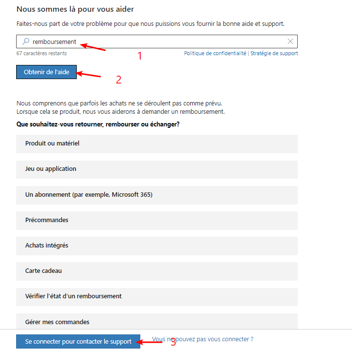- Rendez-vous sur ce site : Contacter – Support Microsoft.