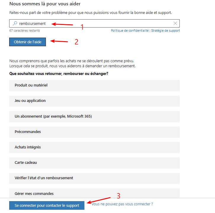 - Rendez-vous sur ce site : Contacter – Support Microsoft.