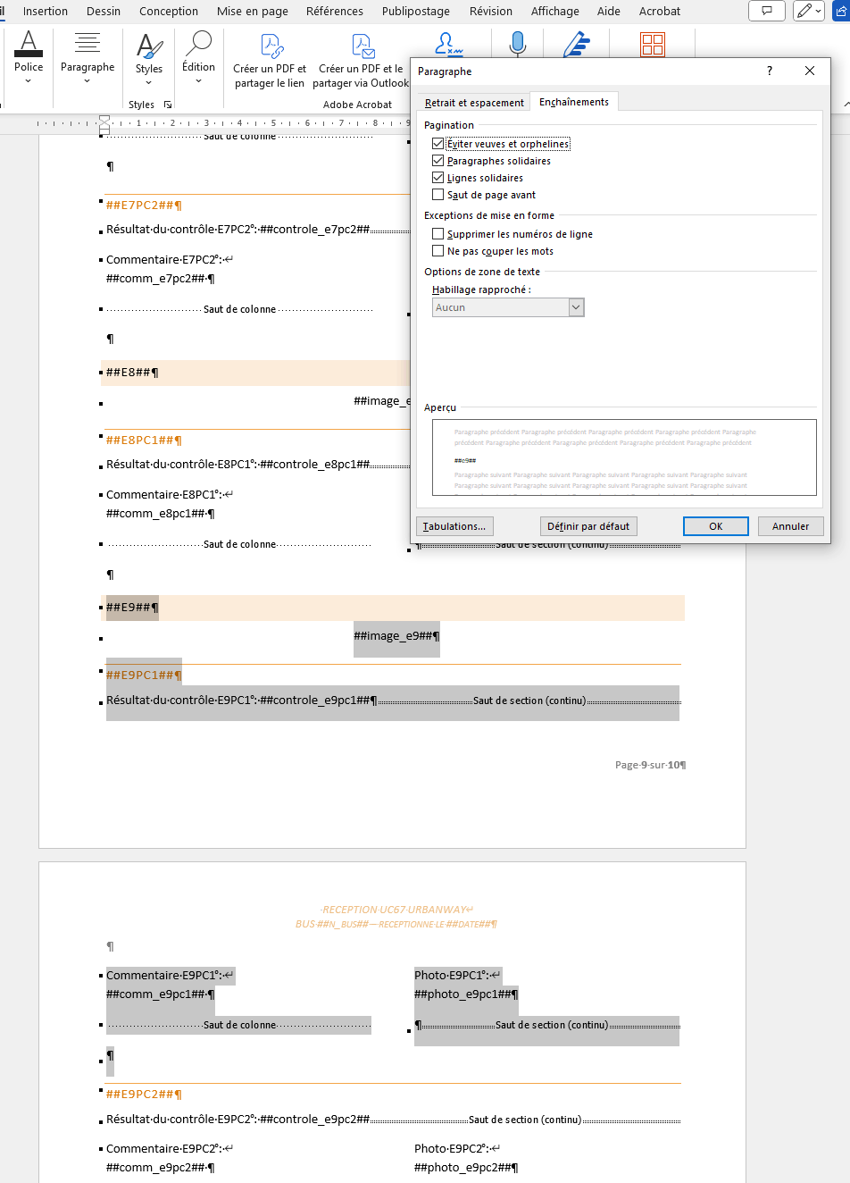 Pour info, sur les quartes lignes en fin de dernière page, certaines réagissent correctement lorsque je tapes des "Entrée" (le bloc sélectionné passe bien en page suivante) ; seulement sur la ligne 2 et 4 (juste avant le saut de section) ; sur les 1 et 3, je coupe le bloc sur les deux pages lorsque je met des "Entrée"