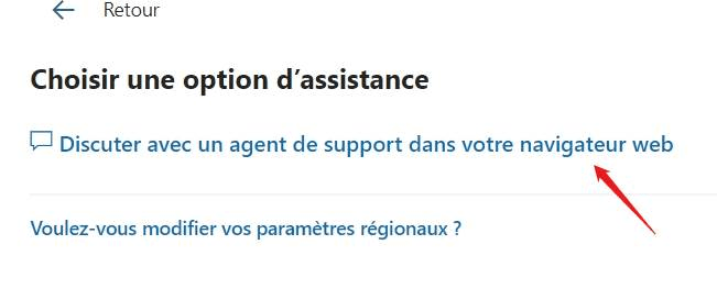 - Vous pouvez maintenant choisir l’option Discuter avec un agent d’assistance sur votre navigateur Web.