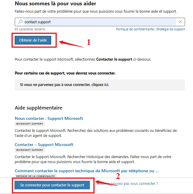 - Cliquez maintenant sur Obtenir de l’aide, puis sélectionnez Contacter l’assistance ci-dessous.