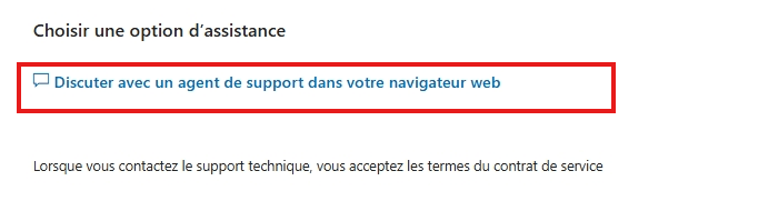 - Vous pouvez maintenant choisir l’option de chat avec un agent d’assistance dans votre navigateur Web.