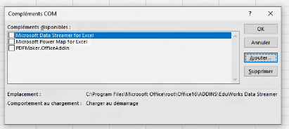 Sur mon ordi de bureau, impossible de le trouver. Il n'est pas présent dans les complément COM.