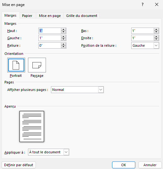 - La taille de page définie dans Word est les paramètres réels de l’imprimante. Vous pouvez vérifier et ajuster les paramètres de la page dans Word. Si vous utilisez du papier A4, assurez-vous de définir la taille de la page de la même manière.
