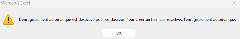 Le message suivant apparaît alors que l'enregisstrement automatique est activé pour ce classeur.