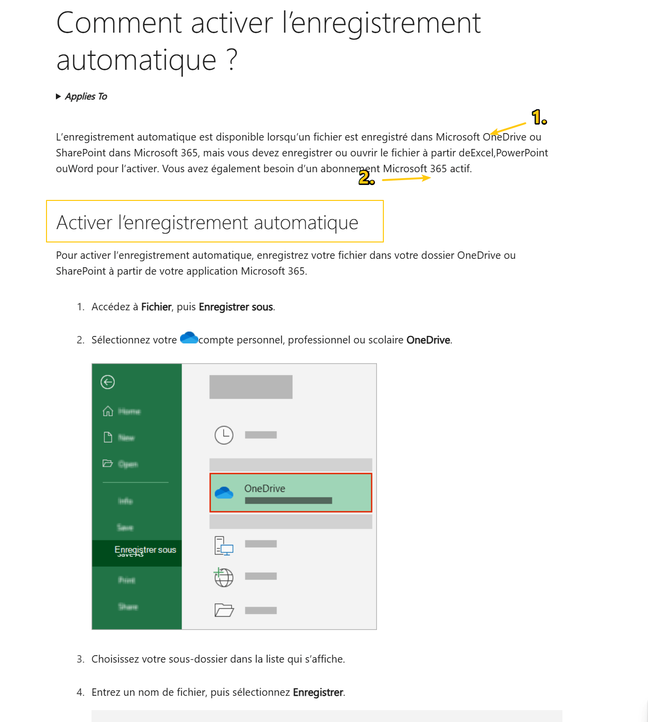 📖 --< Comment activer l’enregistrement automatique ? - Support Microsoft>