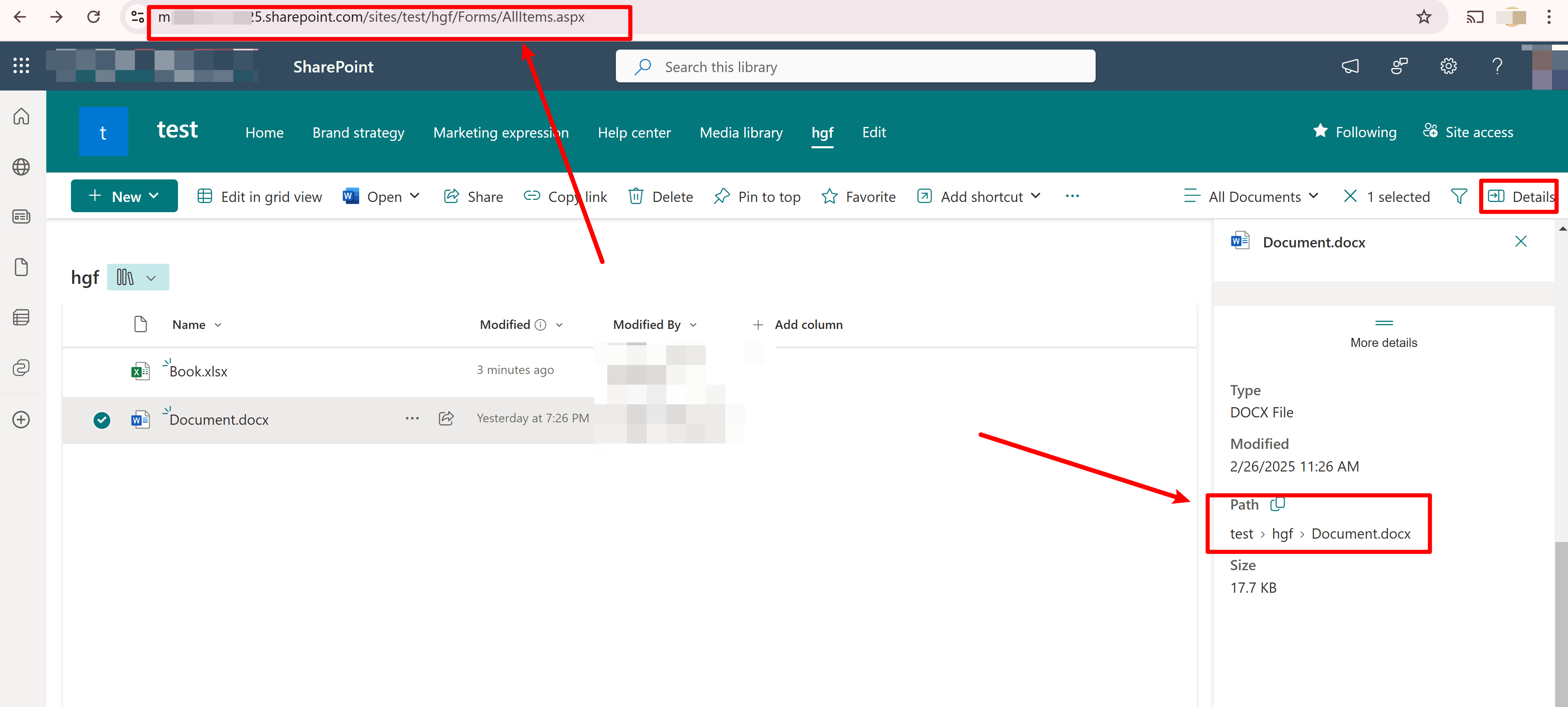 2. Emplacement du fichier : Vous pouvez trouver l’emplacement du fichier en ouvrant le dossier où il est stocké en ligne, en cliquant avec le bouton droit sur le fichier, en sélectionnant Détails et en vérifiant le chemin d’accès . Vous pouvez également partager l’URL du fichier (en masquant toute information personnelle) afin que nous puissions vérifier le format de l’URL pour comprendre son emplacement.