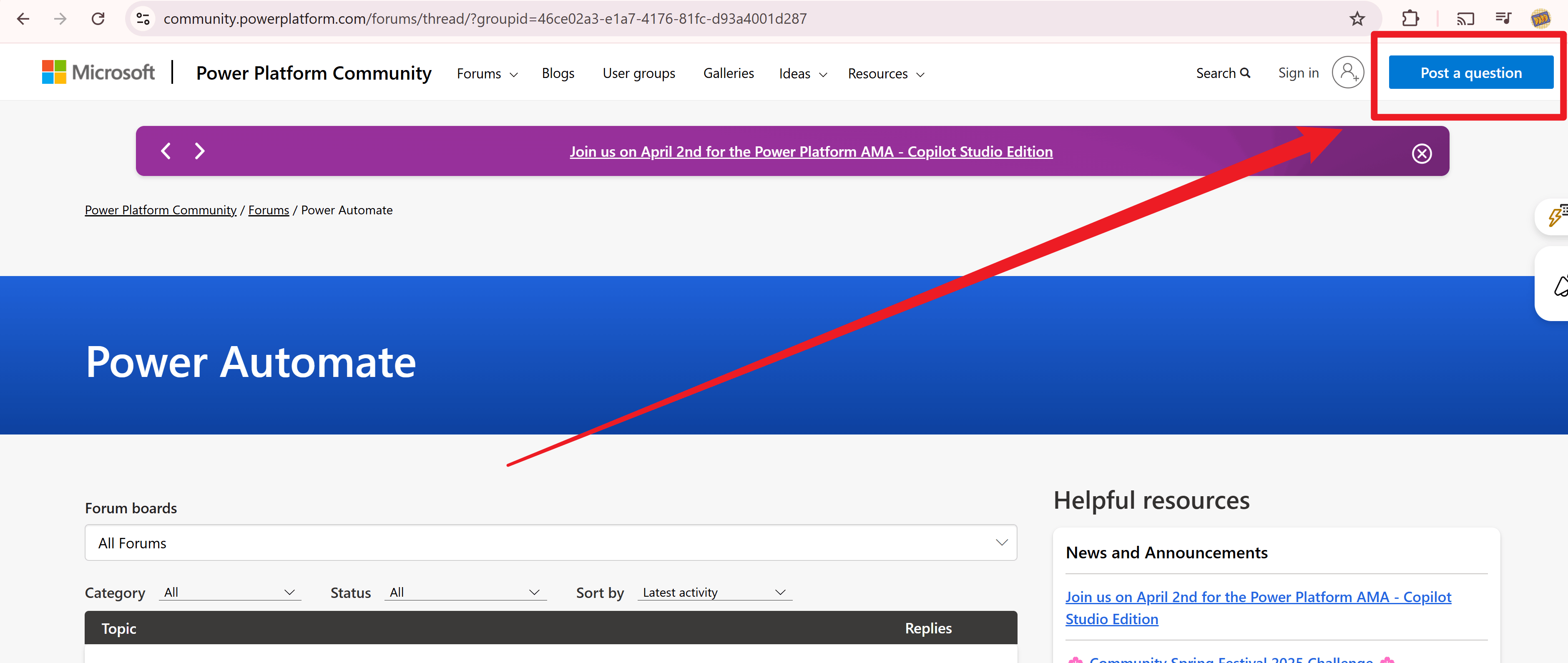 Voici le lien vers la communauté Power Automate : ---- >>> fil de discussion du forum de la communauté Microsoft Power Platform. Vous pouvez copier votre question et l’y poster.