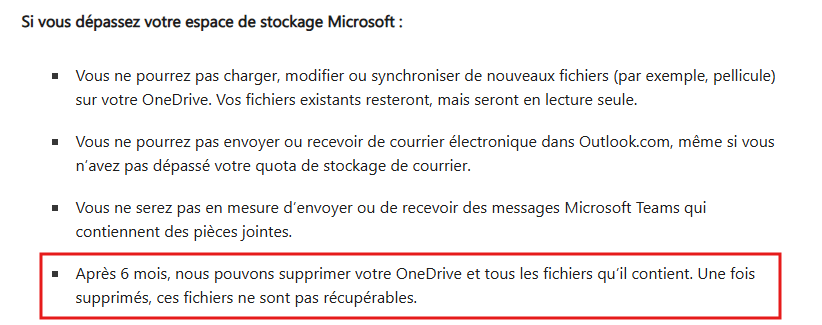 Tout d’abord, je dois préciser que selon la documentation de support officielle, les fichiers stockés dans un compte OneDrive suspendu seront définitivement supprimés après six mois et ne pourront pas être récupérés, comme indiqué ci-dessous :