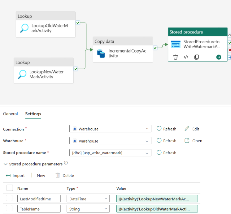 Activité de copie qui recherche des lignes où la colonne de filigrane a une valeur comprise entre l'ancien et le nouveau filigrane. Il copie ensuite ces données de votre entrepôt de données vers votre lakehouse en tant que nouveau fichier.