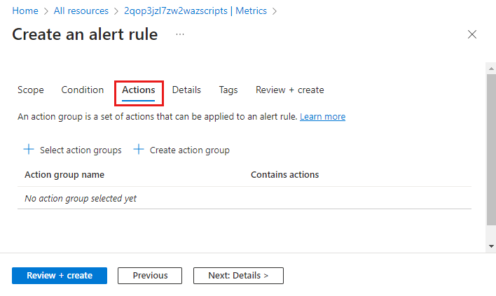 Si vous ne possédez pas encore de groupe d’actions dans votre abonnement, cliquez sur Créer un groupe d’actions pour en créer un.