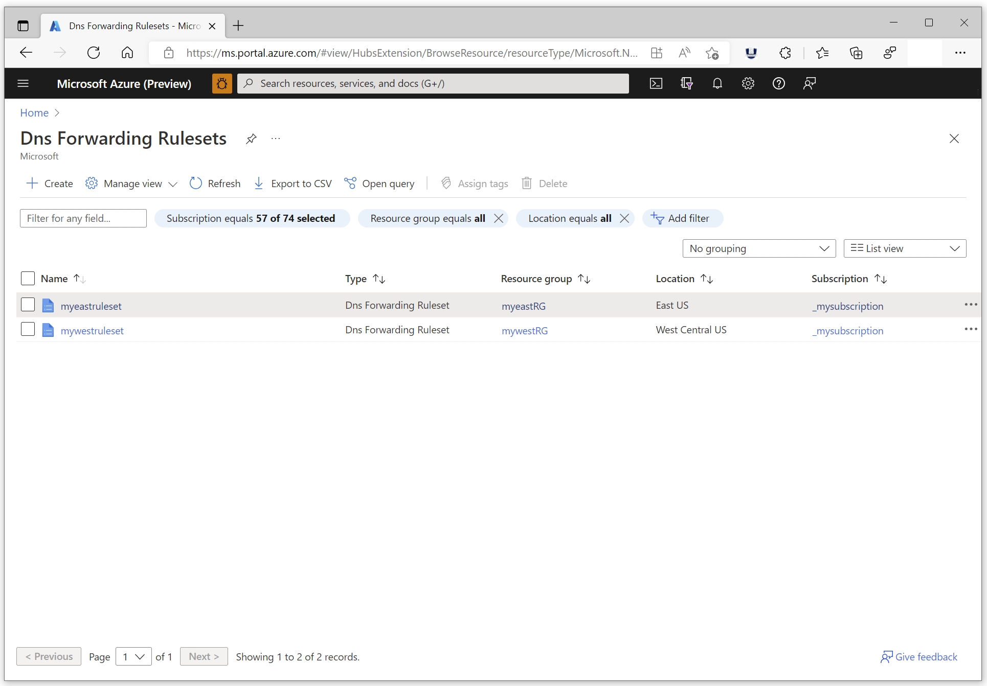 Configurer un ensemble de règles de transfert Azure DNS