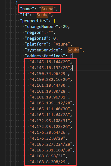 Scubabalise de service et copiez les plages IPv4 associées.Collez les plages IPv4 dans le champ Sources autorisées après avoir supprimé les guillemets et les virgules de fin.