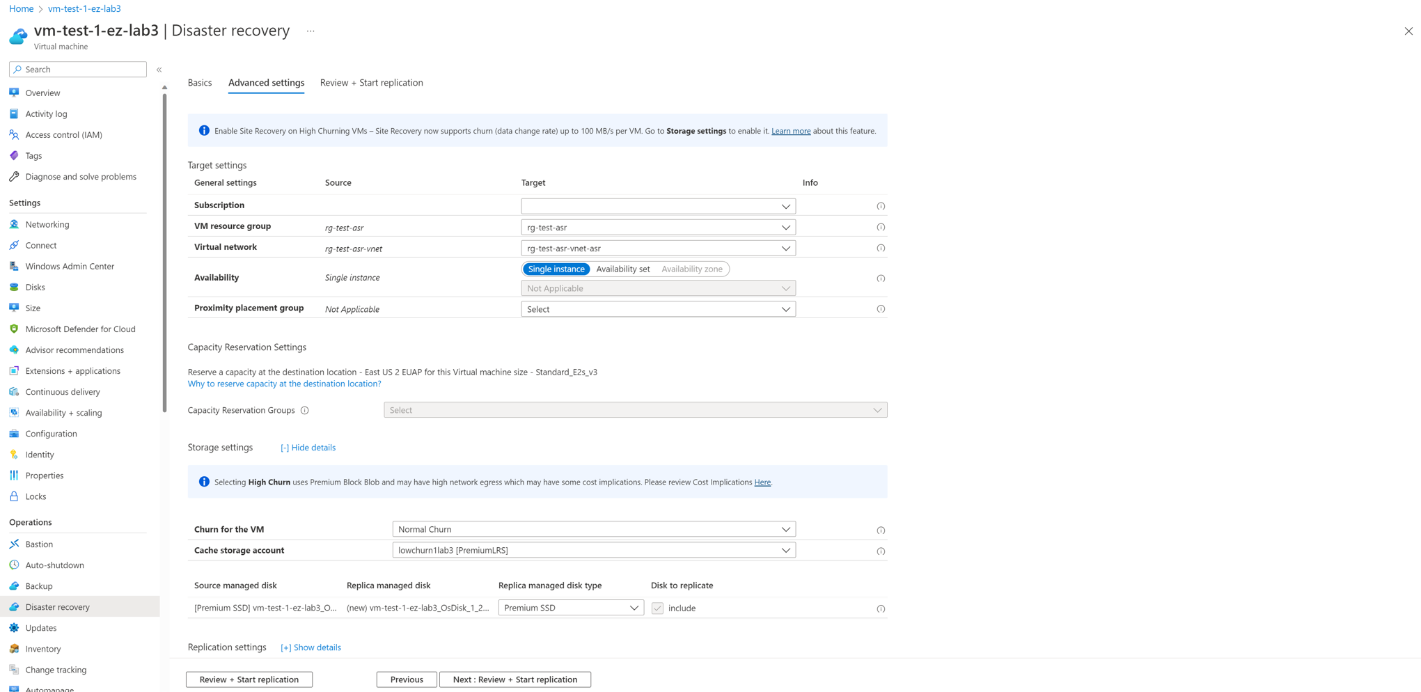 Dans Examiner + démarrer la réplication, passez en revue les paramètres de la machine virtuelle et sélectionnez Démarrer la réplication.