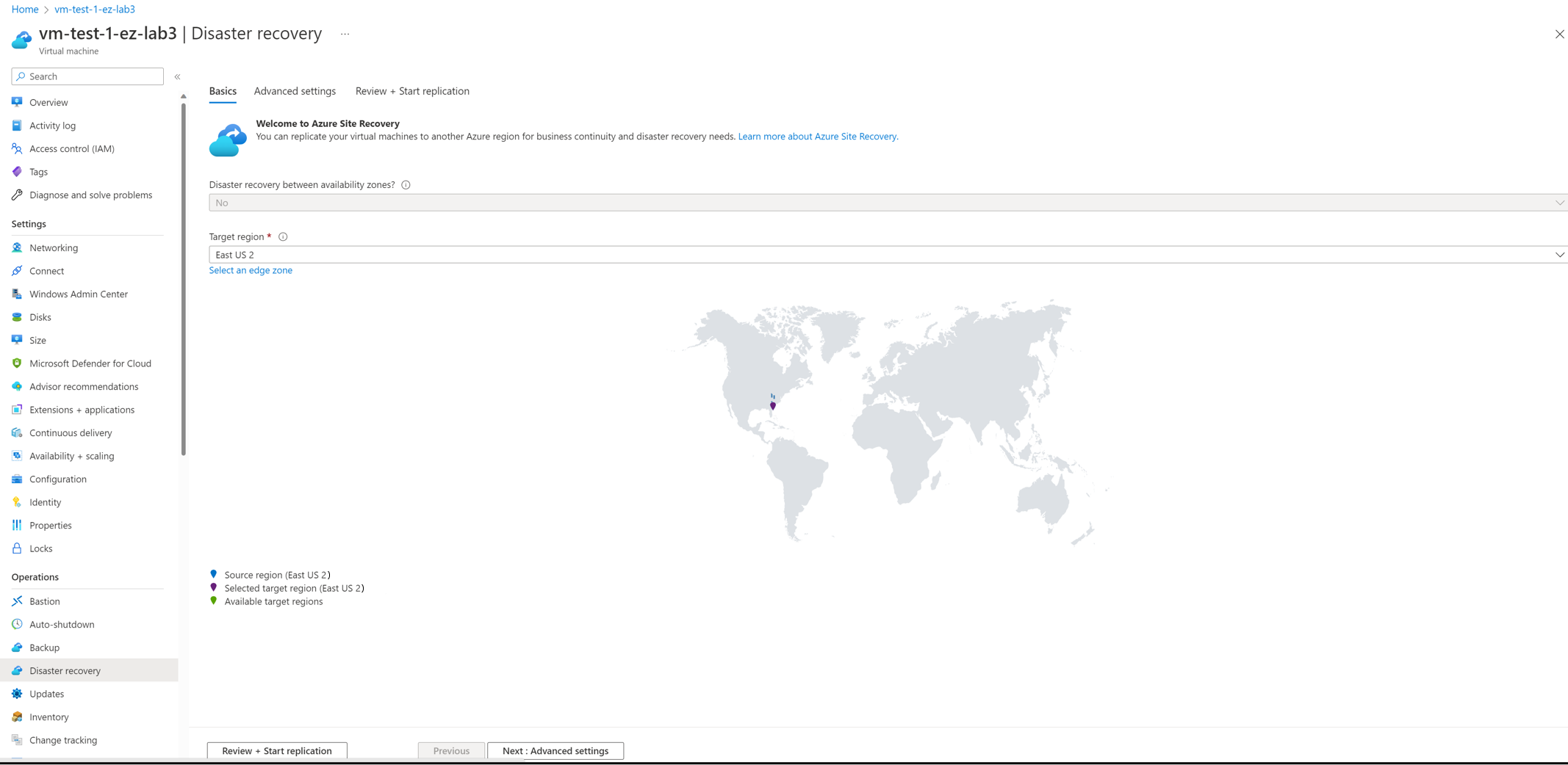 Dans Informations de base, sélectionnez la Région cible ou les zones étendues Azure.
