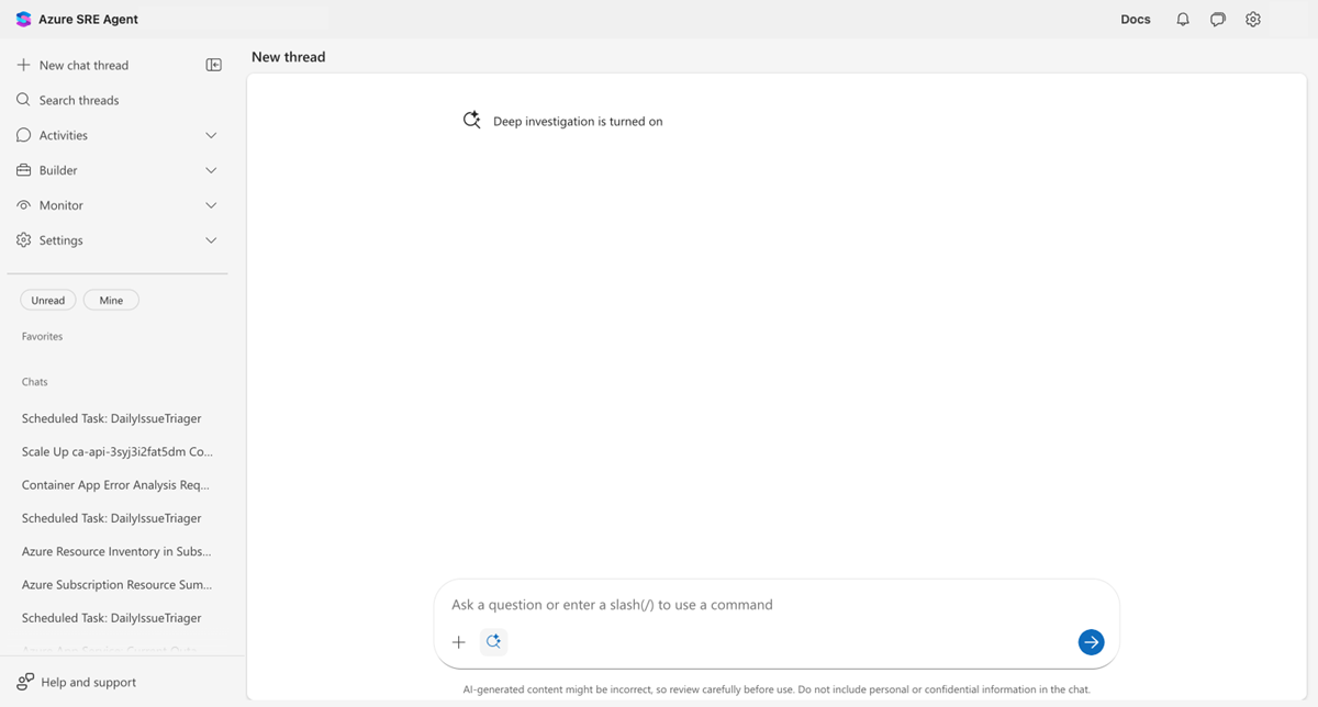 - Agent Azure SRE en cours d’exécution