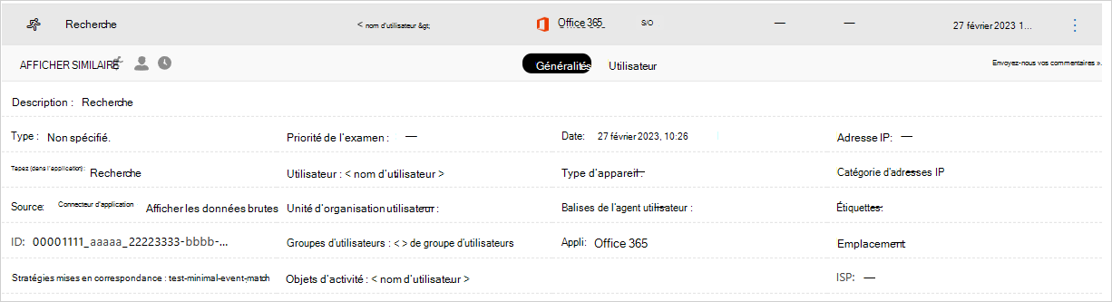 Utilisateur : sélectionnez l’utilisateur pour afficher la page utilisateur de l’utilisateur qui a effectué l’activité.