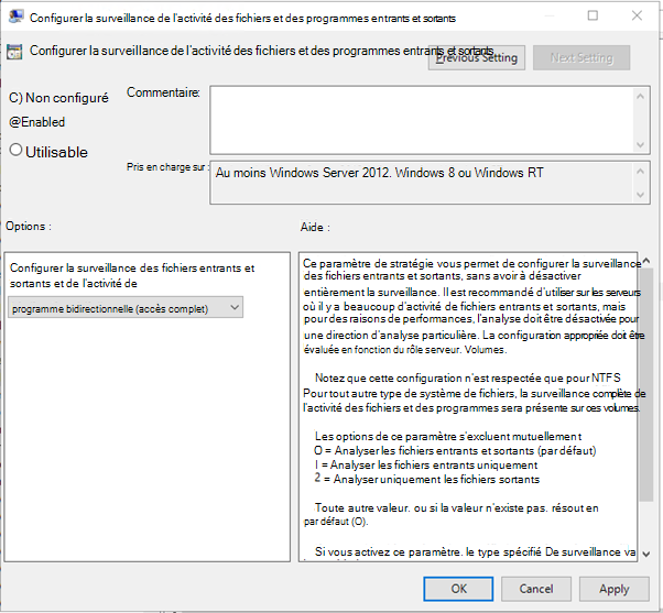 | Surveiller l’activité des fichiers et des programmes sur votre ordinateur | Activé |