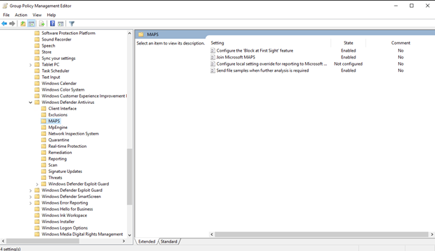 Emplacement de la stratégie :\Windows Components\Microsoft Defender Antivirus\MAPS