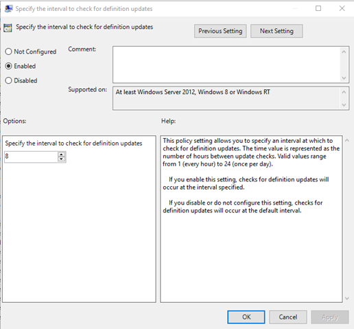 NT AUTHORITY\Well-Known-System-AccountNT AUTHORITY\SYSTEMle fichier XML créé par la préférence stratégie de groupe.Si vous utilisez la nouvelle solution de Microsoft Defender pour point de terminaison unifiée pour Windows Server 2012 R2 et Windows Server 2016, veillez à utiliser les derniers fichiers ADMX dans votre magasin central pour accéder aux fichiers appropriés Microsoft Defender pour point de terminaison options de stratégie. Consultez Comment créer et gérer le magasin central pour stratégie de groupe modèles d’administration dans Windows et télécharger les derniers fichiers à utiliser avec Windows 10.