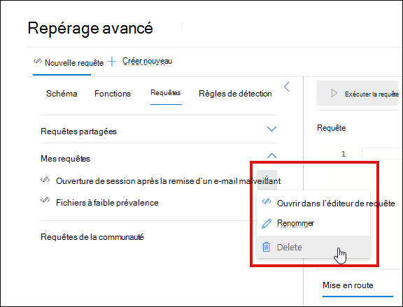 Sélectionnez Supprimer et confirmer la suppression. Ou sélectionnez Renommer et attribuer un nouveau nom à la requête.