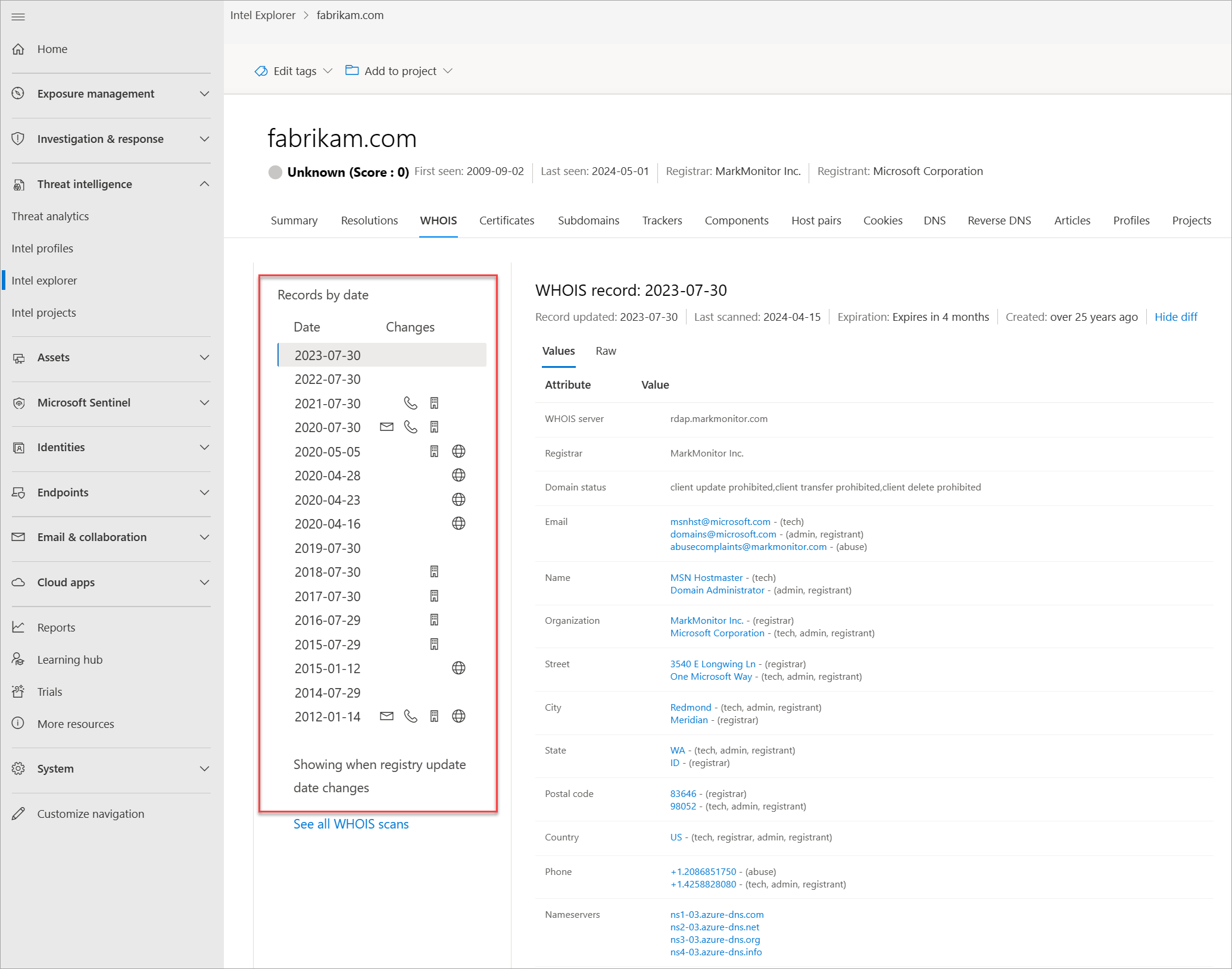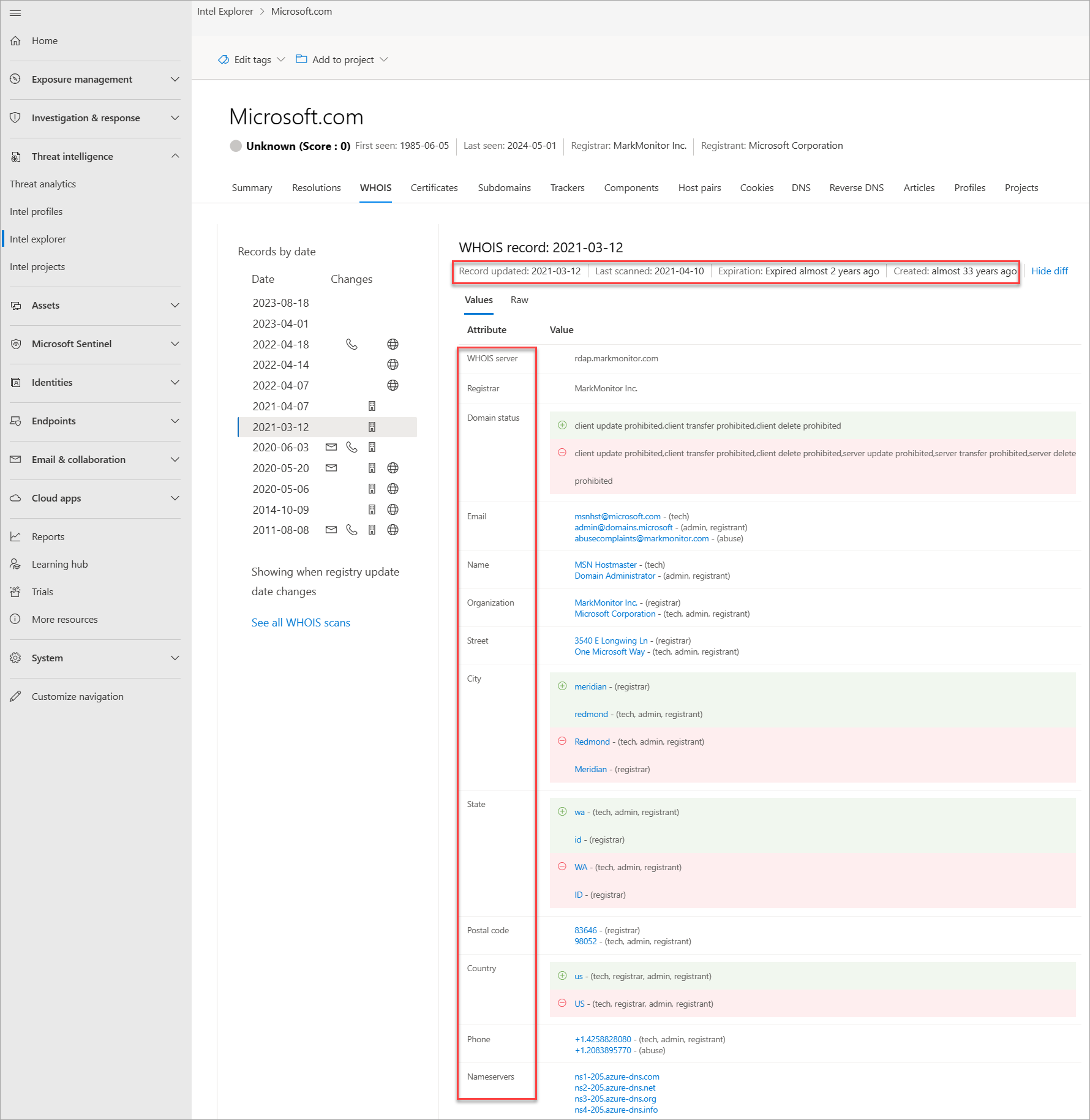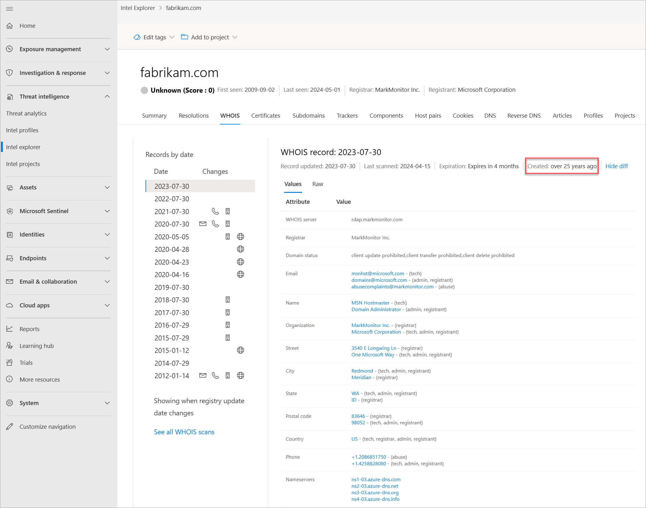 Microsoft centralise de nombreux jeux de données dans Microsoft Defender Threat Intelligence (Defender TI), ce qui permet aux clients et à la communauté de Microsoft d’effectuer plus facilement l’analyse de l’infrastructure. L’objectif principal de Microsoft est de fournir autant de données que possible sur l’infrastructure Internet pour prendre en charge différents cas d’usage de sécurité.