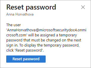 Vous pouvez exiger que les utilisateurs à risque réinitialisent leur mot de passe pour corriger leur risque. Étant donné que ces utilisateurs ne sont pas invités à modifier leur mot de passe par le biais d’une stratégie basée sur les risques, vous devez les contacter pour réinitialiser leur mot de passe. La façon dont le mot de passe est réinitialisé dépend du type d’utilisateur :