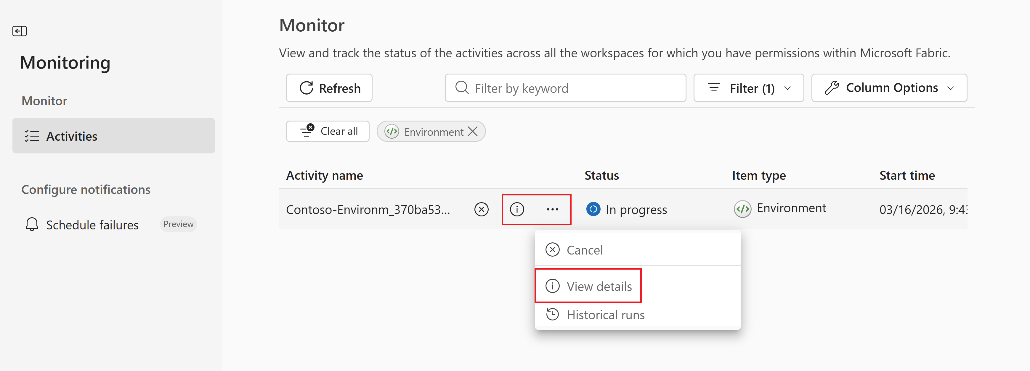 Dans le portail Fabric, ouvrez le hub de surveillance.